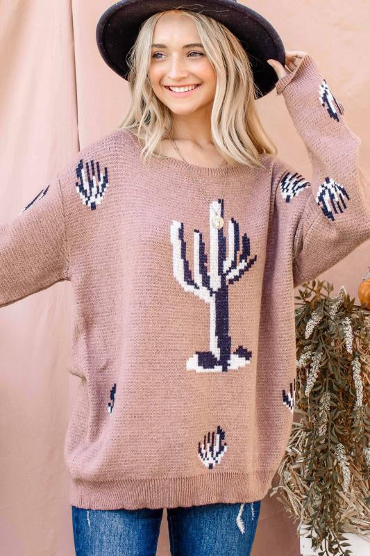 Cactus Pattern Taupe Sweater